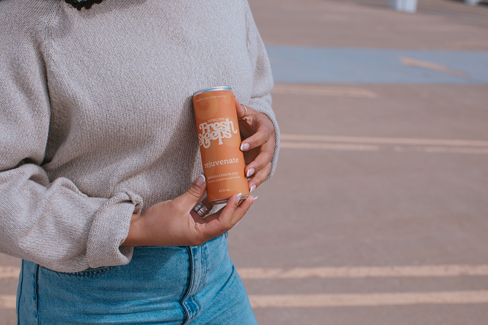 Description: Rejuvenate is a nitro-brewed masala chai blend crafted from organic fair trade loose leaf tea to support digestion, de-stress, and restore balance. Infused with powerful adaptogens like ashwagandha and shou pu'erh, plus warming spices including cinnamon, clove, cardamom, and ginger, it helps calm your body while soothing your mind. Every can is enriched with electrolytes like sodium, potassium, and magnesium for hydration, and lightly sweetened with pure maple syrup for a smooth finish. At 40 calories per can, Rejuvenate is a grounding, wellness focused tea that comforts and restores - perfect for moments when you need to reset and find your calm.